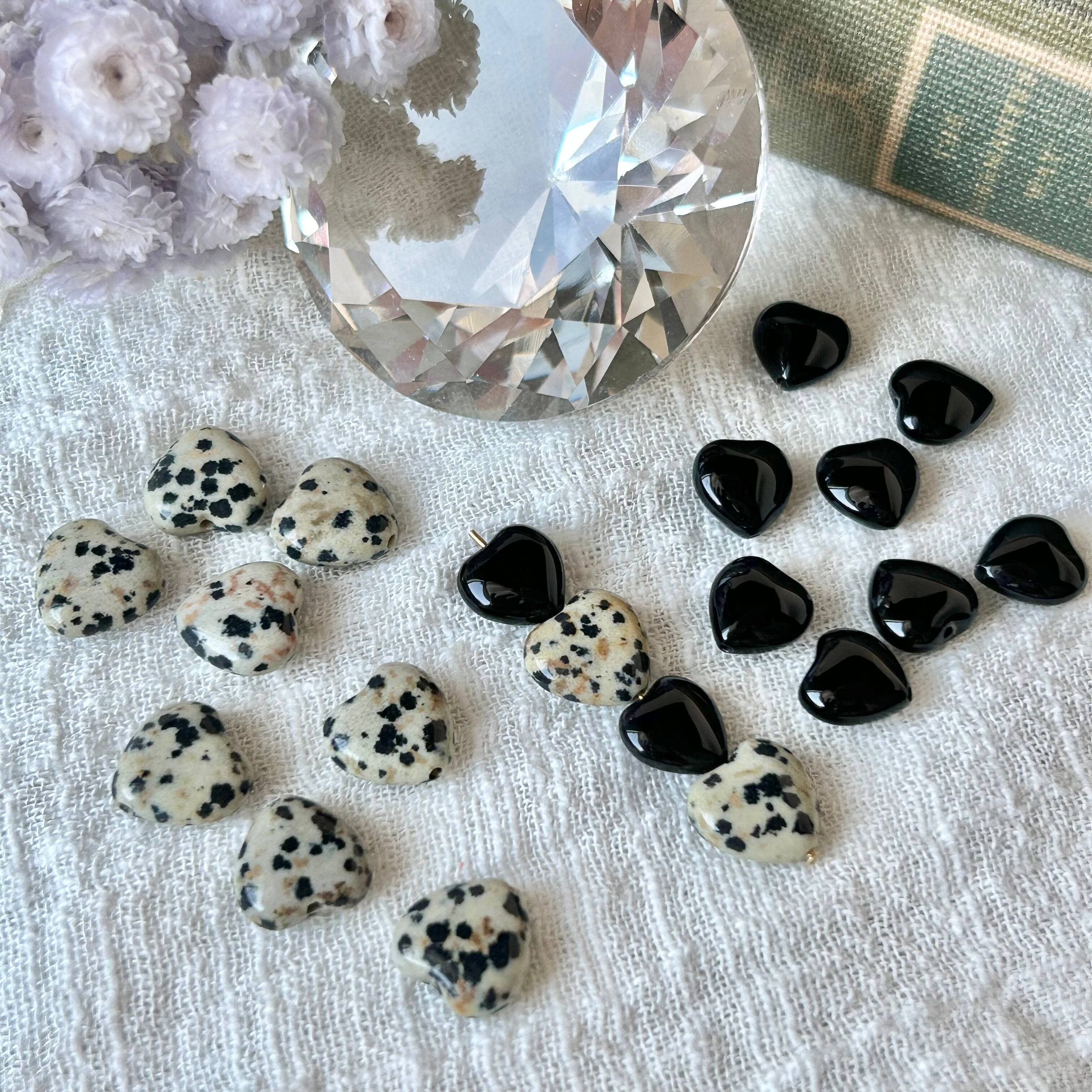 ブラックオニキス ダルメシアンジャスパー ハート型 1ペア入り