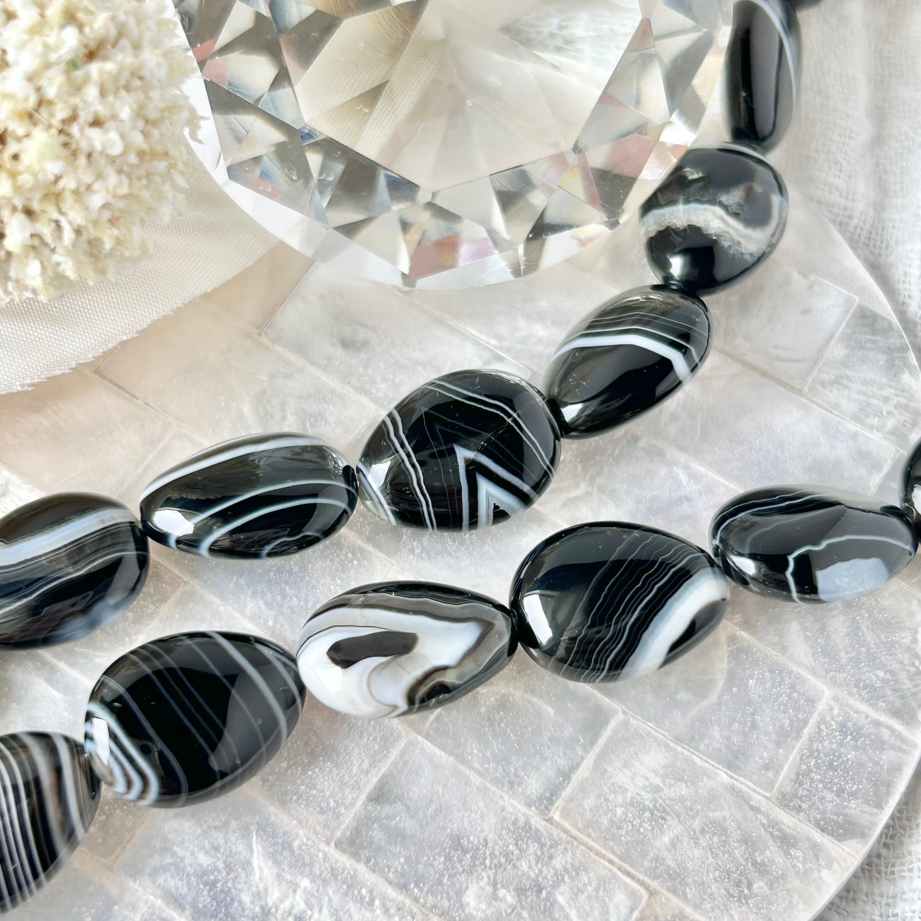 天然石 ブラック縞瑪瑙 ドロップ 1個入り